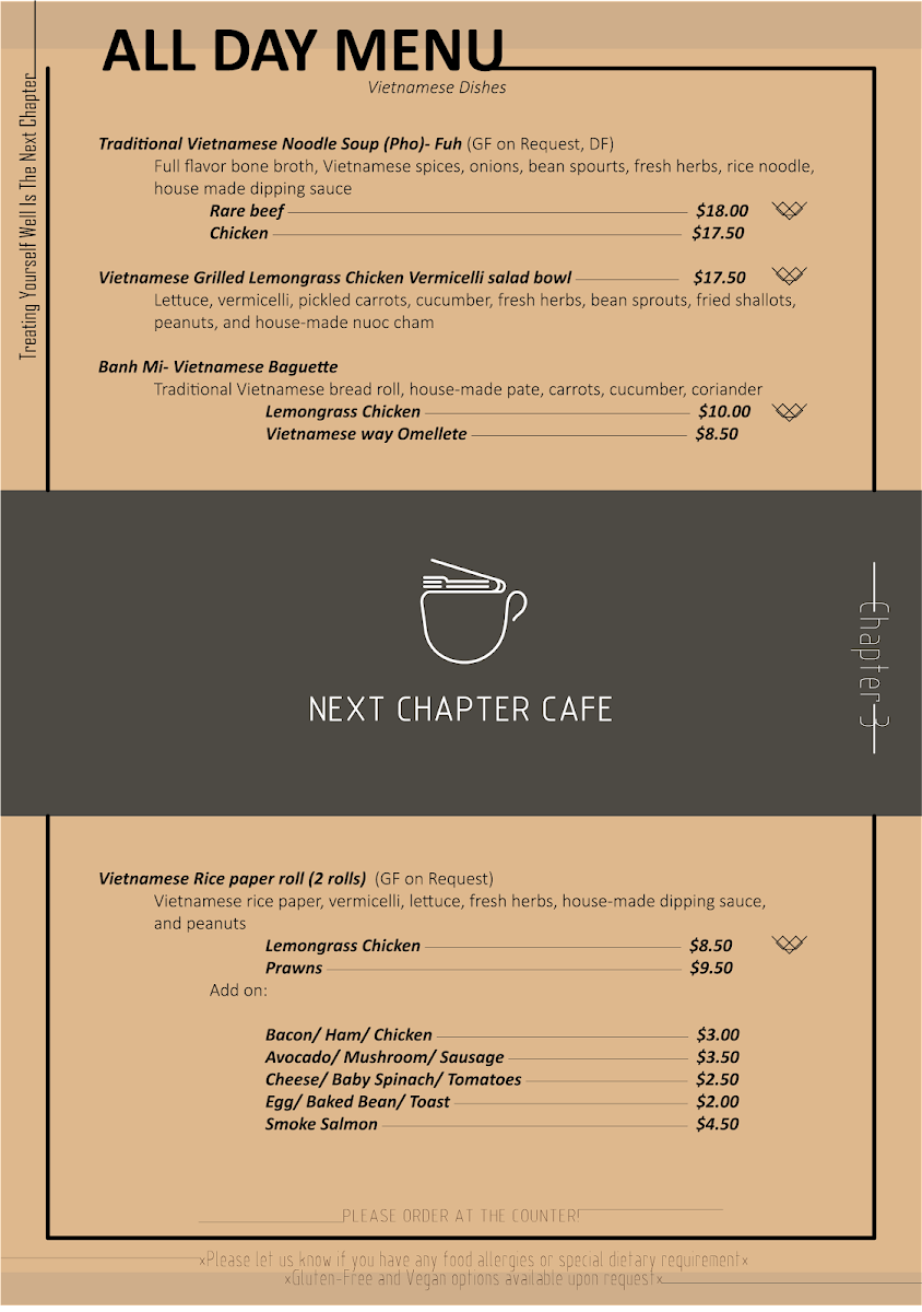 Welcome to Next Chapter Cafe, a charming gem located in Tewantin, QLD. This cafe is not just your typical coffee stop; it’s a culinary journey through the flavors of Vietnam. The all-day menu features highlights like the traditional Vietnamese Noodle Soup (Pho) and the aromatic Vietnamese Grilled Lemongrass Chicken Vermicelli salad bowl, both bursting with fresh ingredients and rich flavors.
